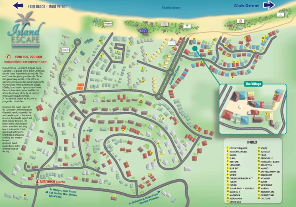 Villa Matisse is located on Orient Bay, practically on the water's edge, and offers sea views from every bedroom. Spread over two floors, it can accommodate six people. The three bedrooms each have their own private shower room. On the ground floor, the main living area is a welcoming space with a dining room and a fully equipped kitchen. The terrace is covered. You can access the beach through the garden gate. Guests at the Matisse Residence have access to a shared swimming pool and parking.
