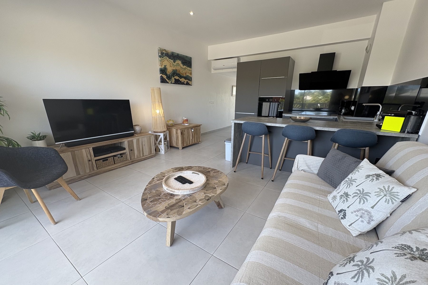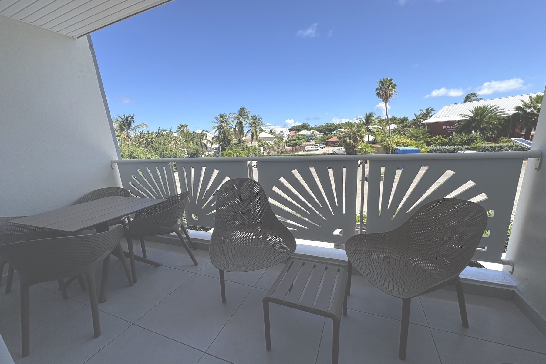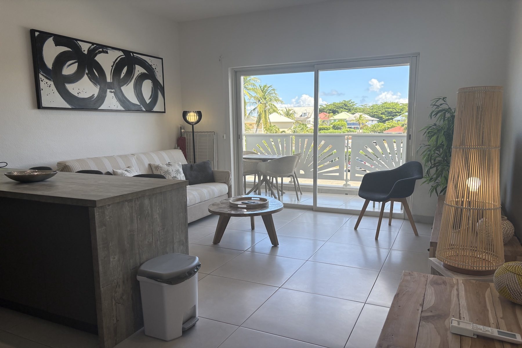 In the village of Baie Orientale, on the first and last floor of a small residence, the apartment Maeva offers you to be in the peace and quiet and at 2 mn on foot from restaurants, shops and beach. The apartment is bright and decorated in the latest trends. The equipment is modern and of quality.