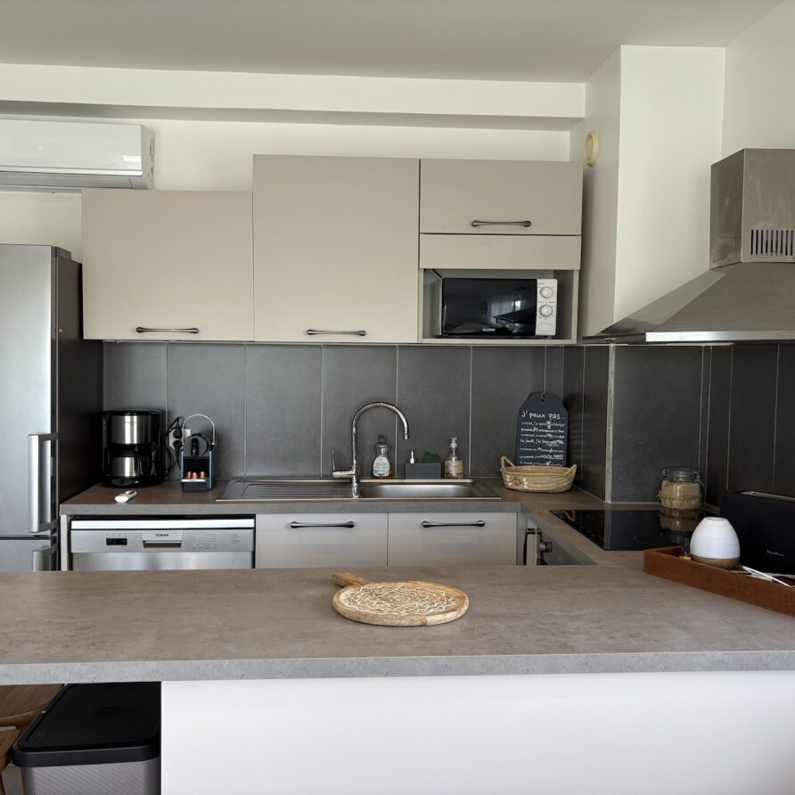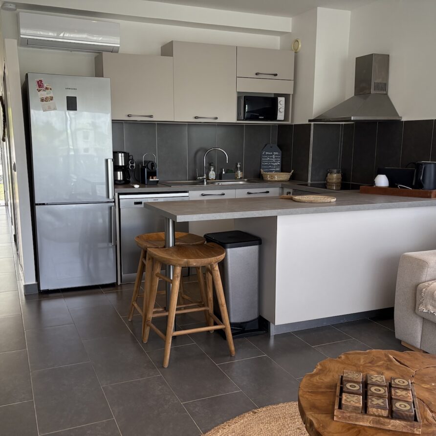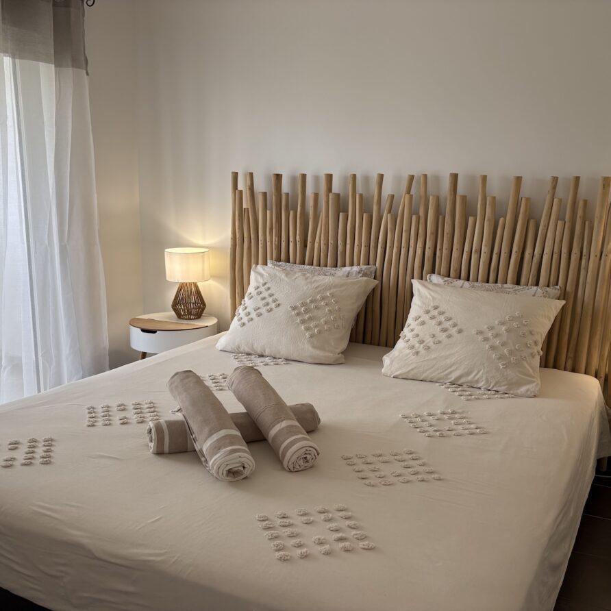 - Amenities: Air Condition, Beachfront, Bedroom comforts, Common parking, Free parking, Full equiped kitchen, Hair dryer, kettle, kitchen, Linens provided, Pool, Terrace, Towels provided, Tv - French cable, Wi-Fi