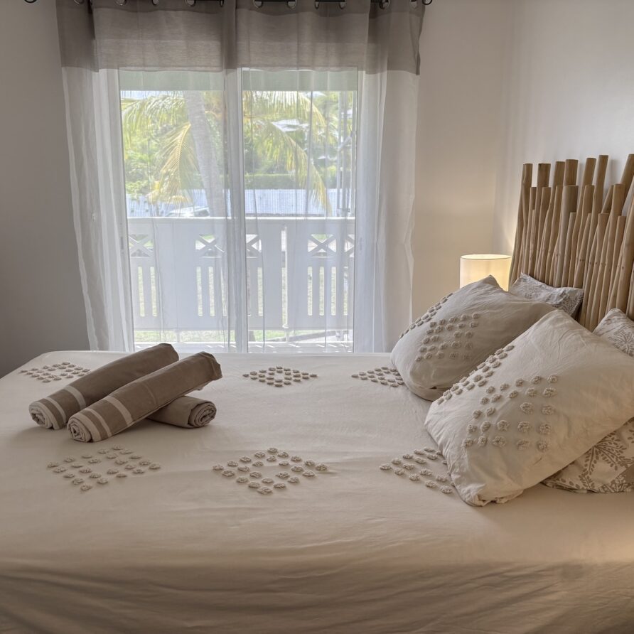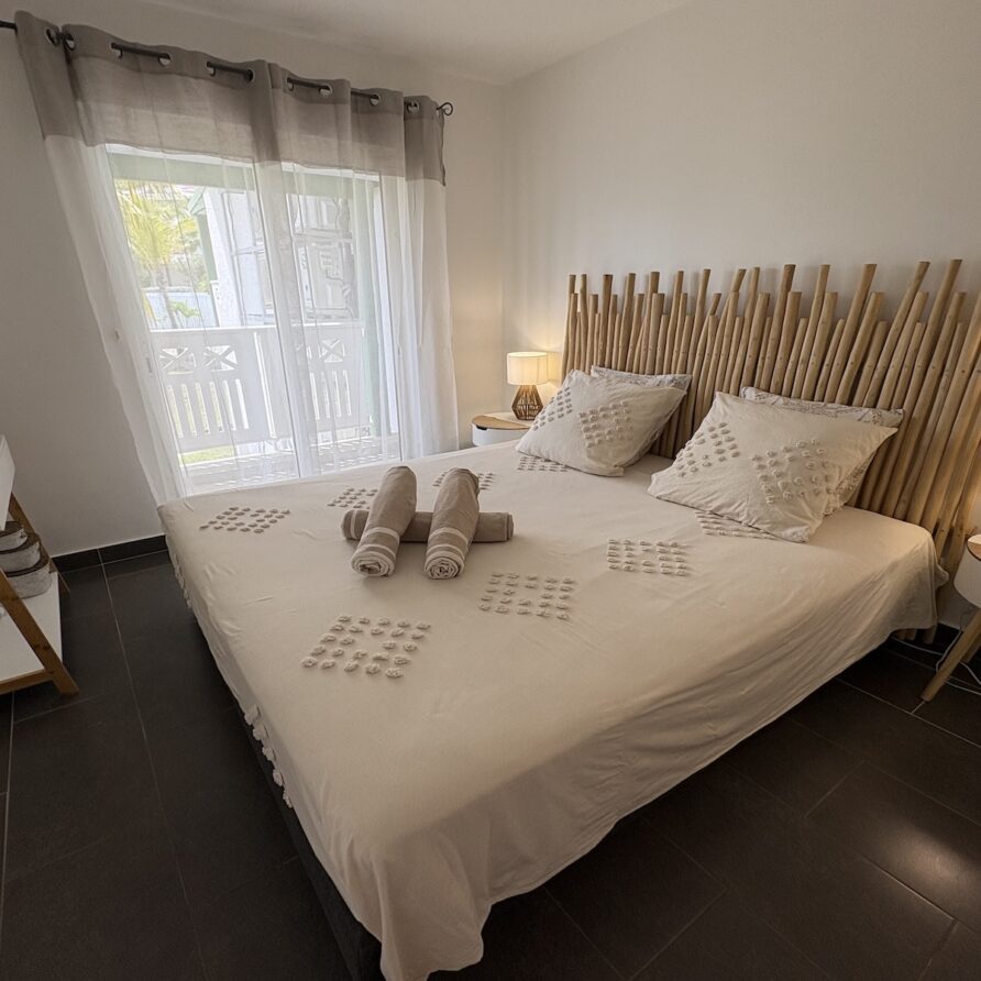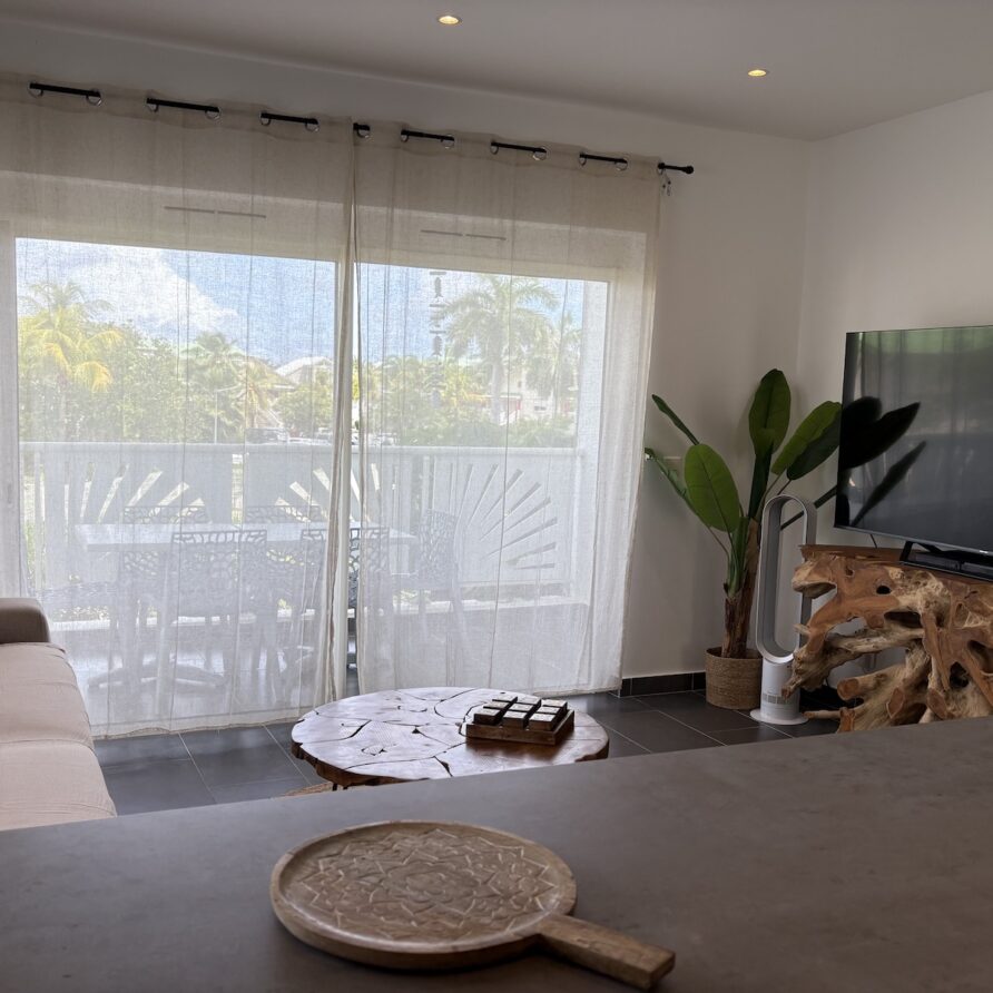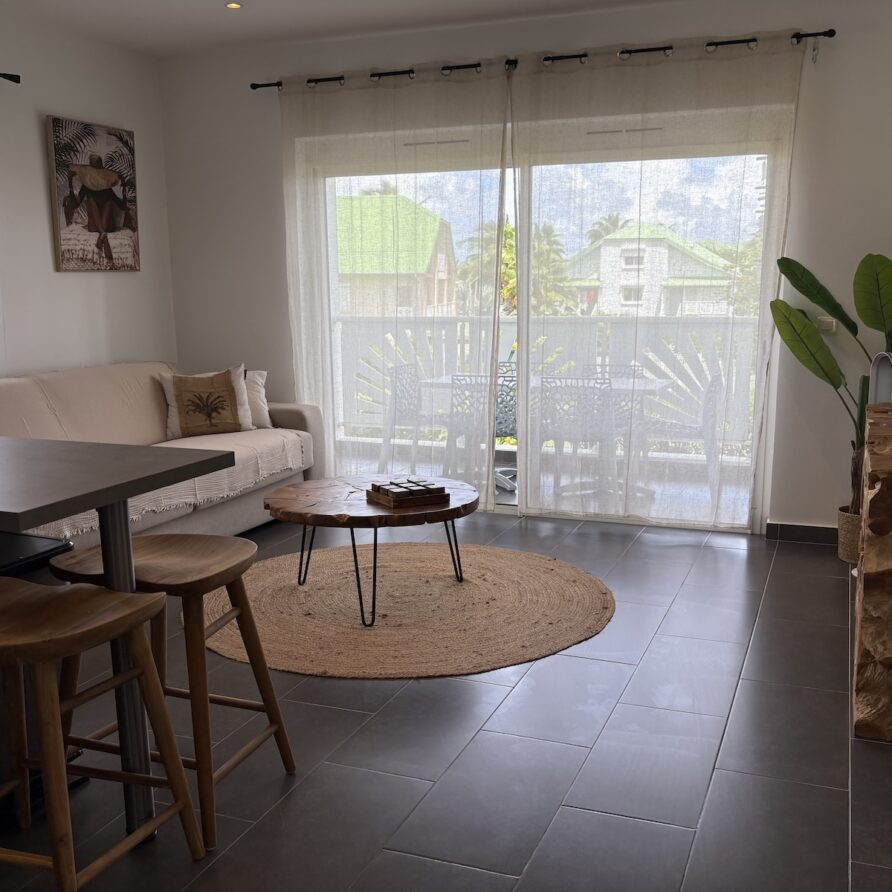 Few steps from the Village of Baie Orientale, on the first and last floor of residencee TOPAZI, the apartment SWEET JAVA is the perfect spot to be close to activities, shops and beach and far enough for quietness.