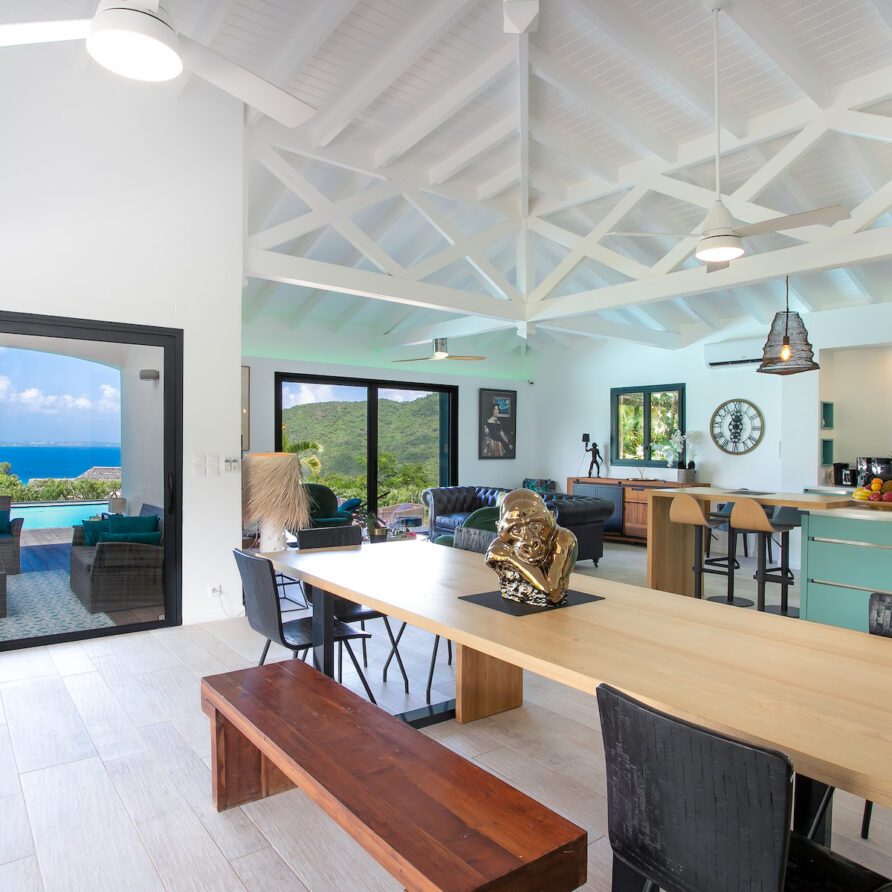Located on the heights of Anse Marcel, Villa Saba offers you a peaceful and exotic setting with an incomparable view of the turquoise waters of the Caribbean Sea and the island of Anguilla on the horizon.