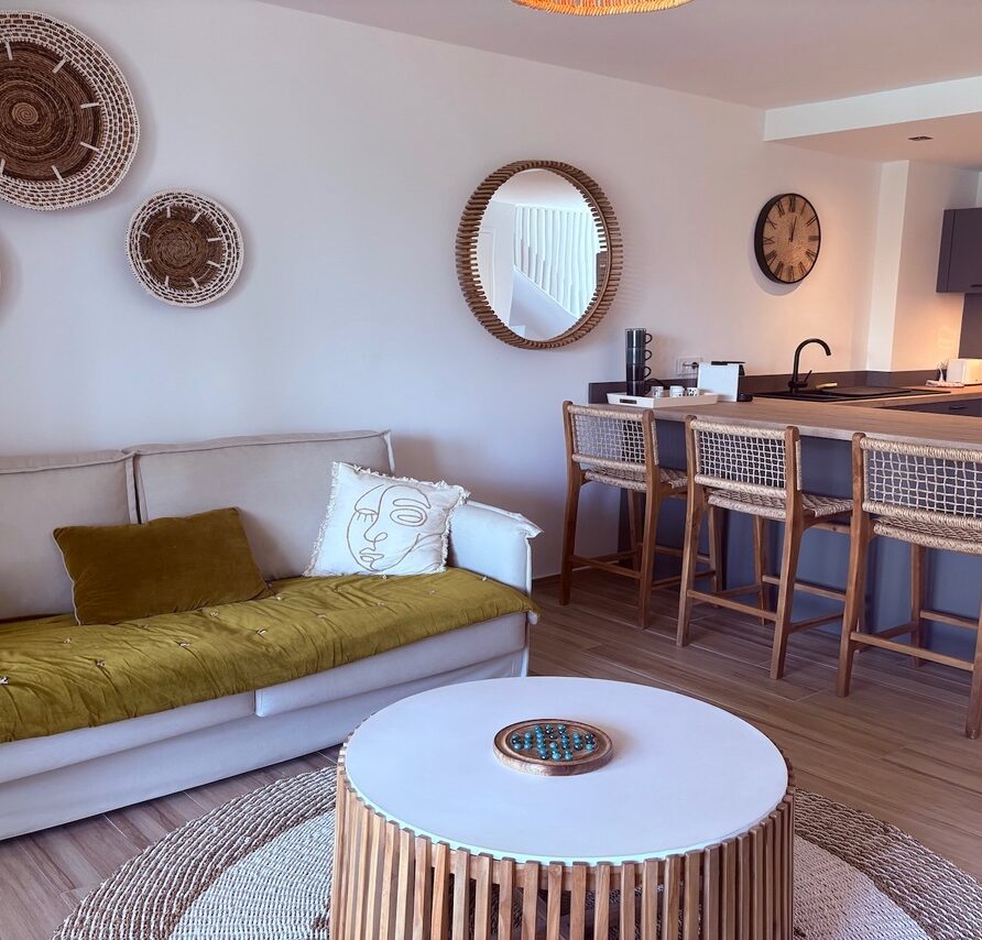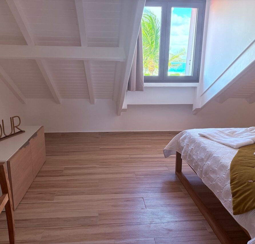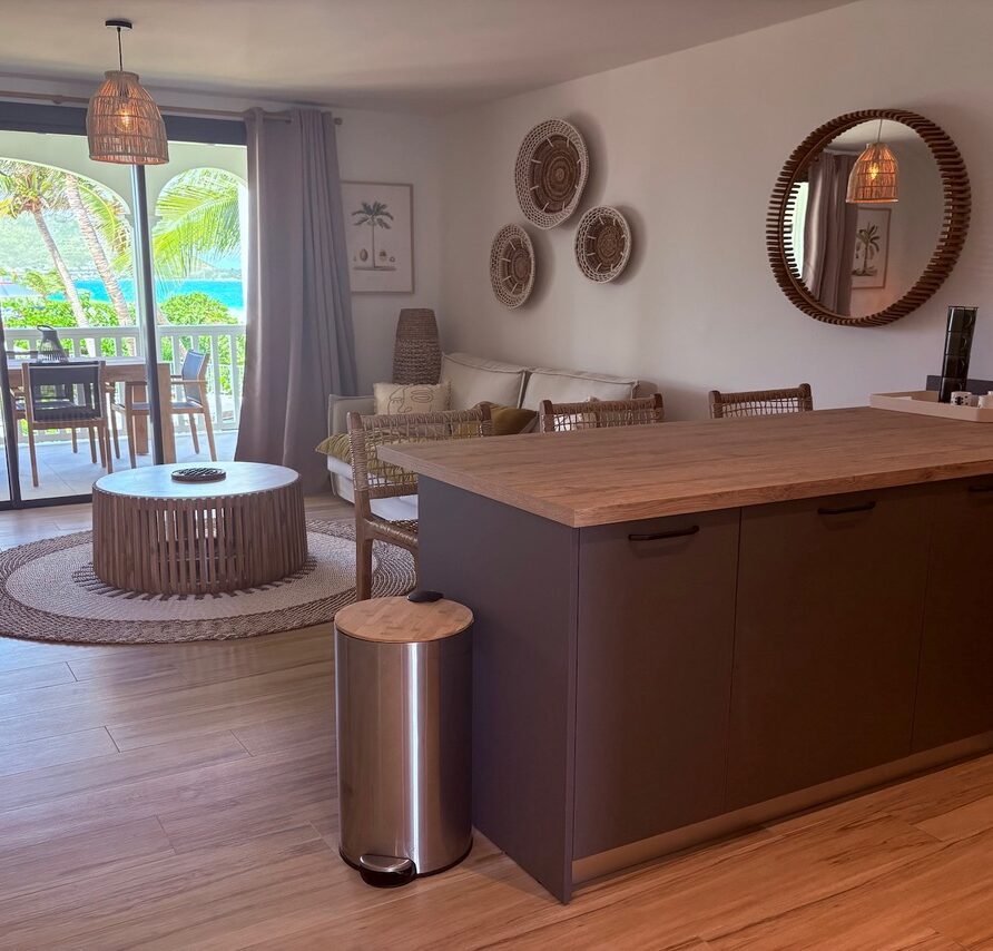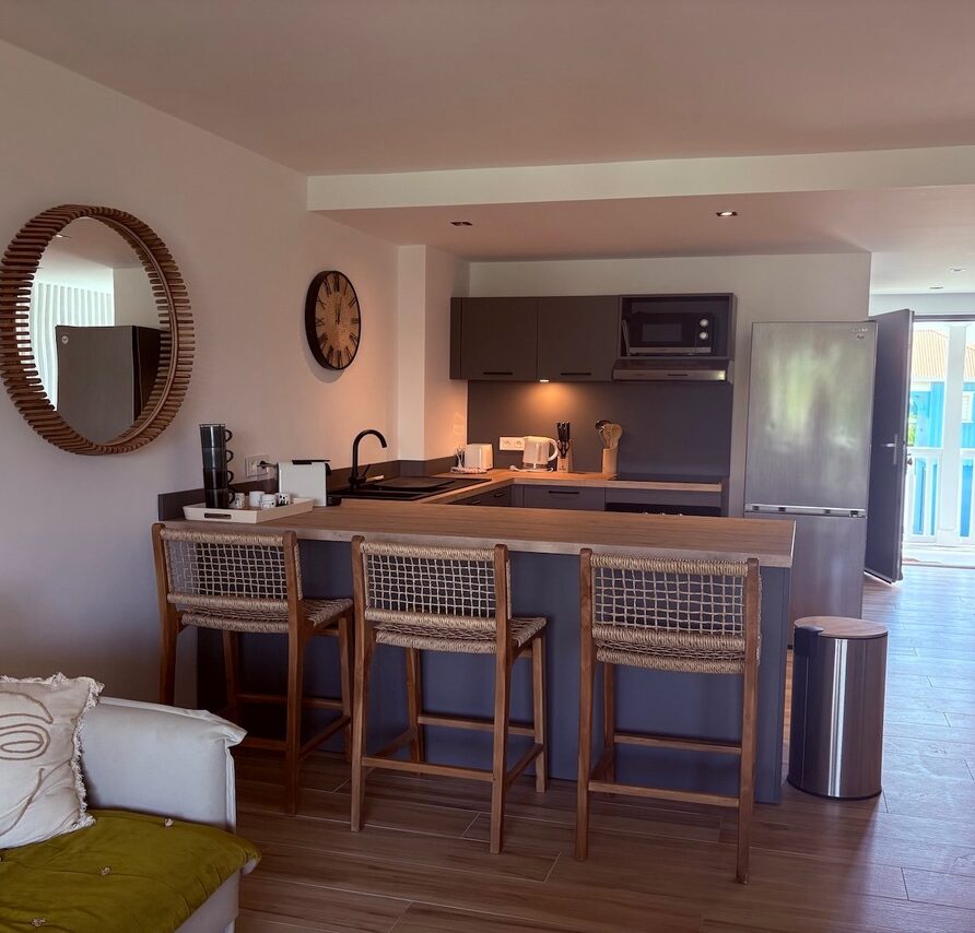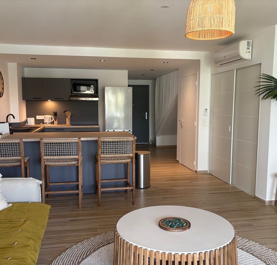 The duplex opens onto a fully equipped kitchen and a beautifully appointed living room, providing an ideal space to gather and relax. Enjoy the trade winds by having your meals on the terrace while contemplating the sea.