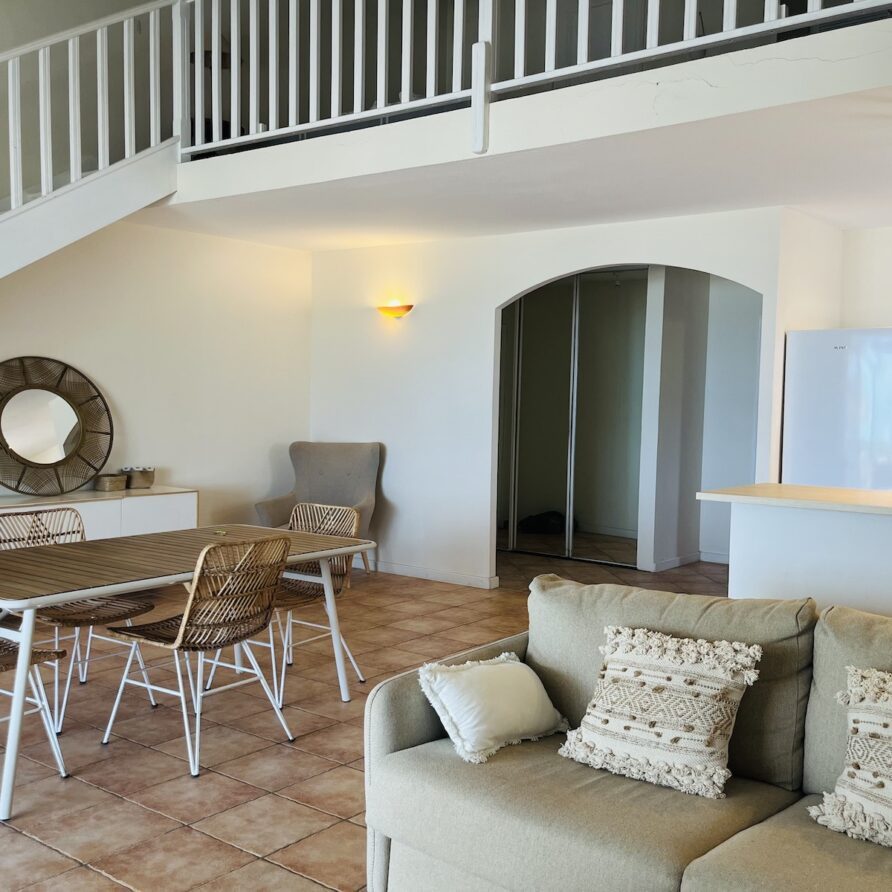Et si vous étiez en 1ere ligne et au pour vos prochaines vacances?! L’appartement Fanny se situe sur la Place du Village de la Baie Orientale avec vue directe sur le water sport du Bikini !!