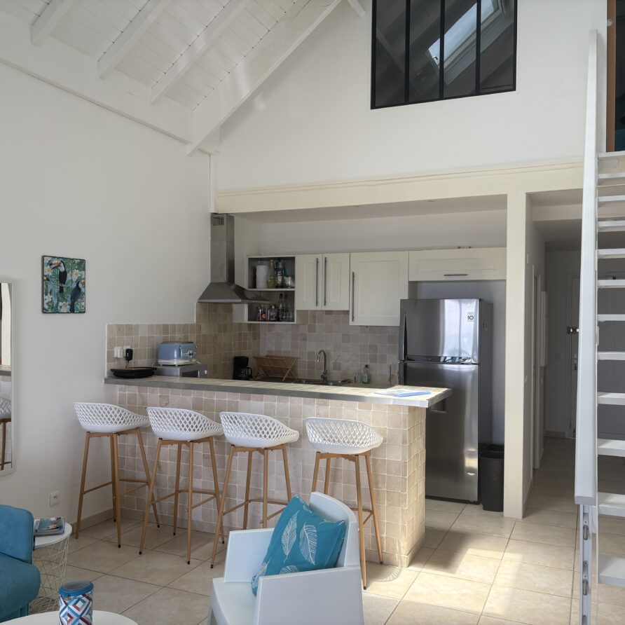 La cuisine américaine ouvrant sur le salon est parfaitement équipée