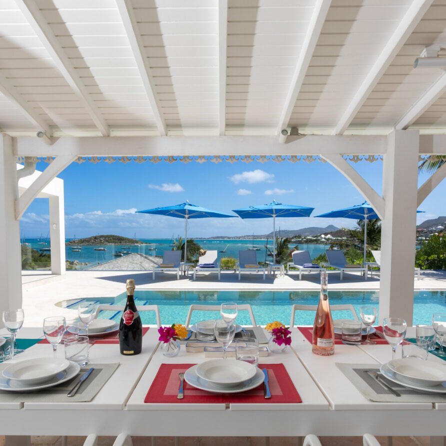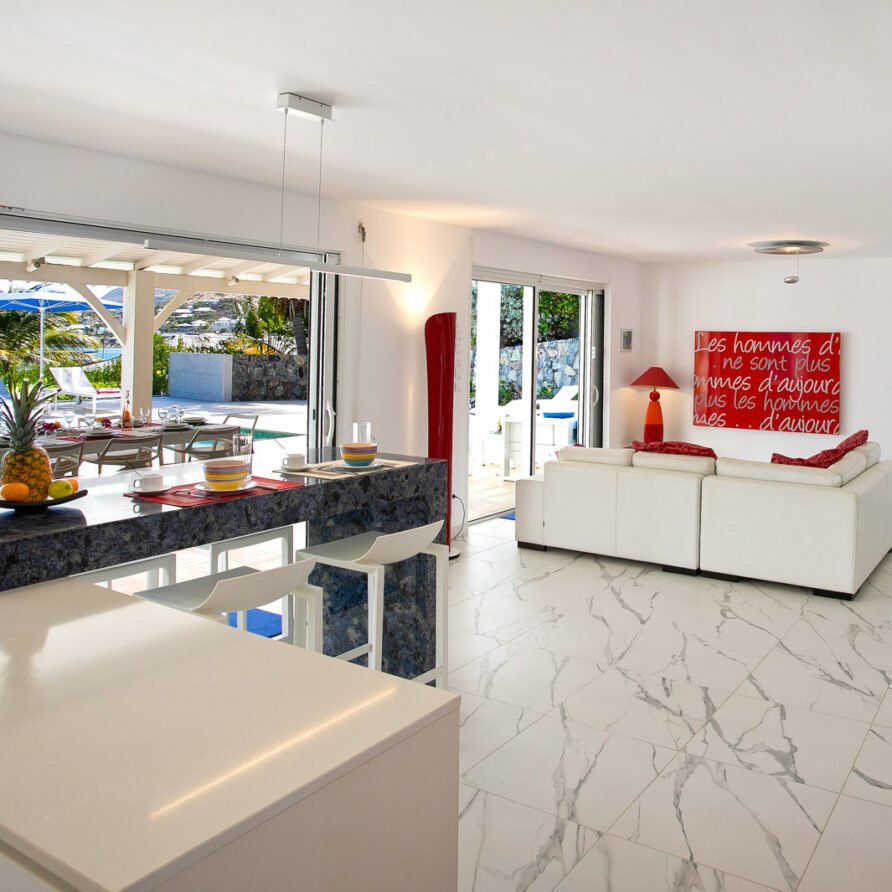 Une situation exceptionnelle pour cette villa située dans la baie de Cul de Sac face au fameux Ilet Pinel.