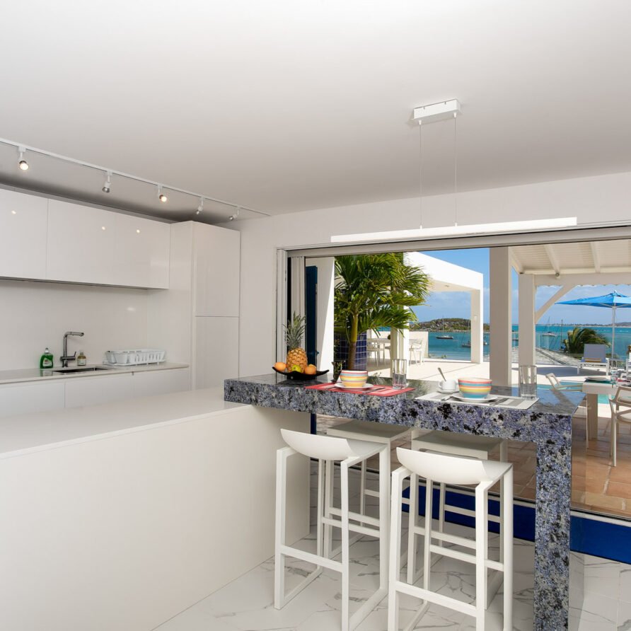 La VILLA AZUR, renovée après Irma, les pieds dans l’eau, avec une plage privée et un ponton possède tous les atouts pour vous faire passer un séjour inoubliable à St Martin.  L’agencement et la végétation préserveront votre intimité. Jardinier, pisciniste et femme de ménage sont à votre service pour des vacances sans soucis.