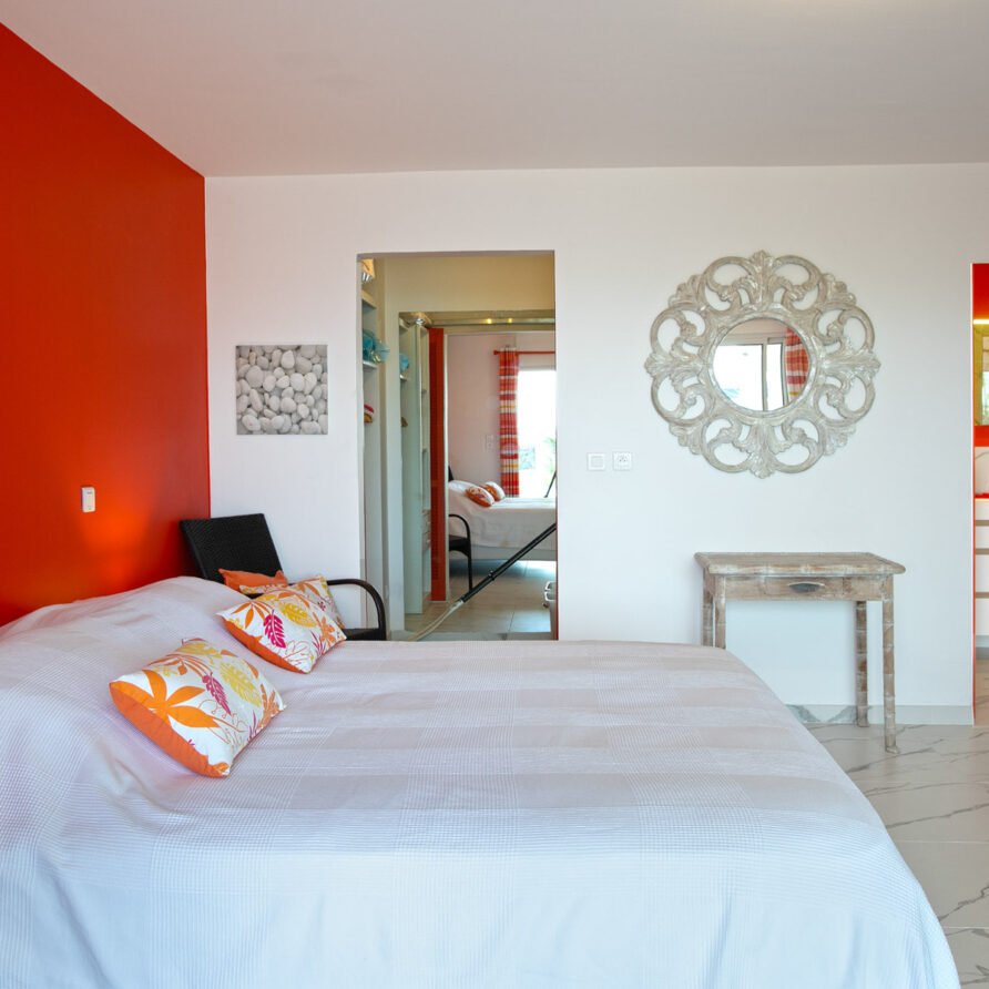 La villa peut accueillir 8 personnes et dispose de tous les aménagements nécessaires à des vacances de luxe. A l’intérieur une cuisine parfaitement équipée, 4 chambres spacieuses toutes avec vue mer, 4 salles de bains, écran plat avec la tv Orange, lecteur dvd, wifi.