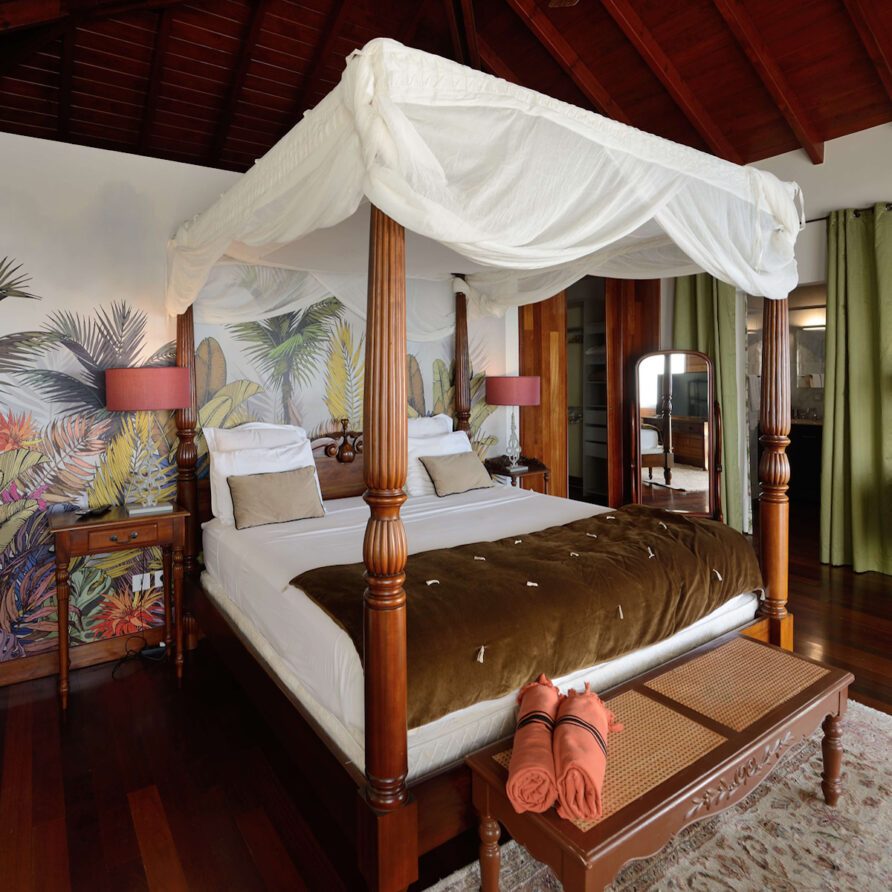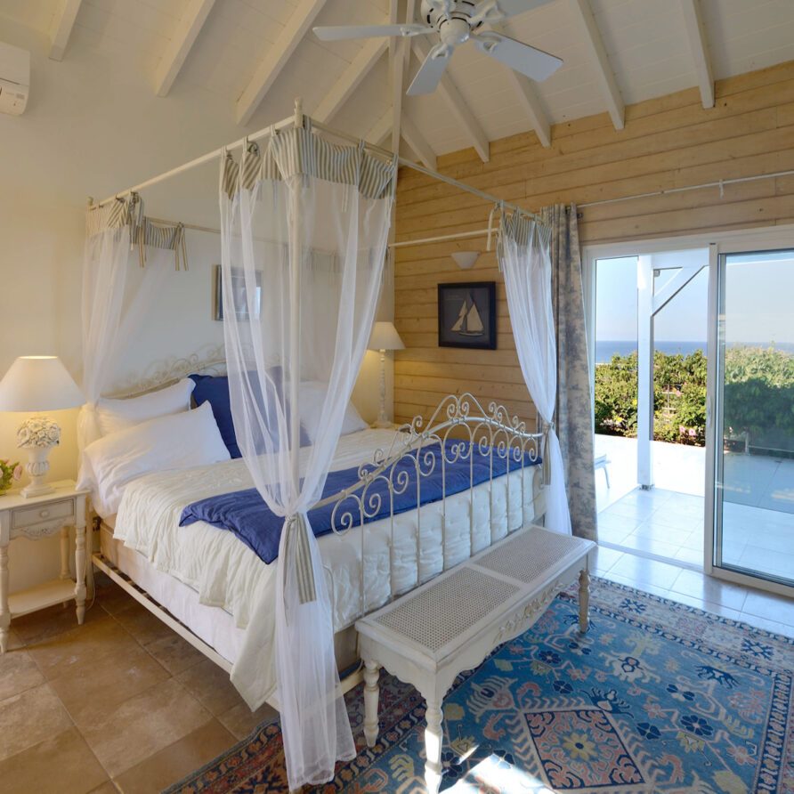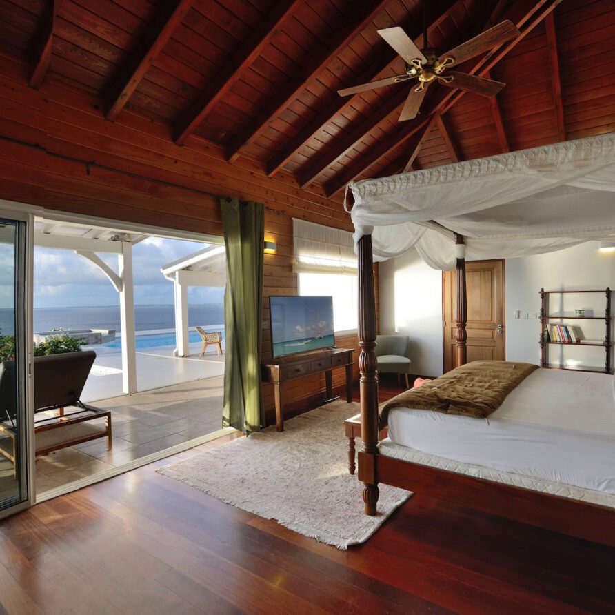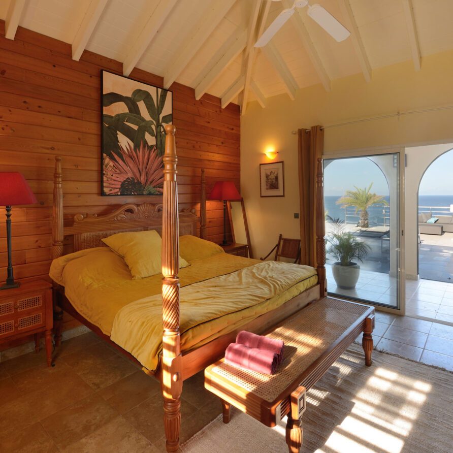 Trois chambres ont un lit « king » size, des placards de rangement, et un accès direct sur les piscines et l’extraordinaire vue mer.