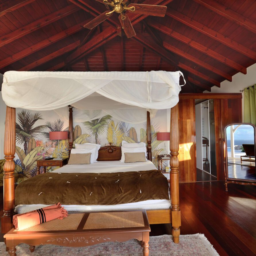 Il a été récemment construit un ravissant « carbet » de bois près de villa, celui-ci est situé face à la mer et abrite :