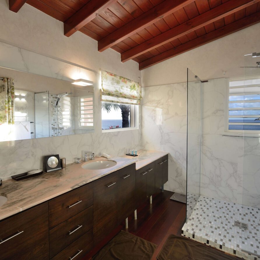 Cette luxueuse villa, tout à fait exceptionnelle, vous offre l’une des plus belles vues de l’île de Saint Martin.